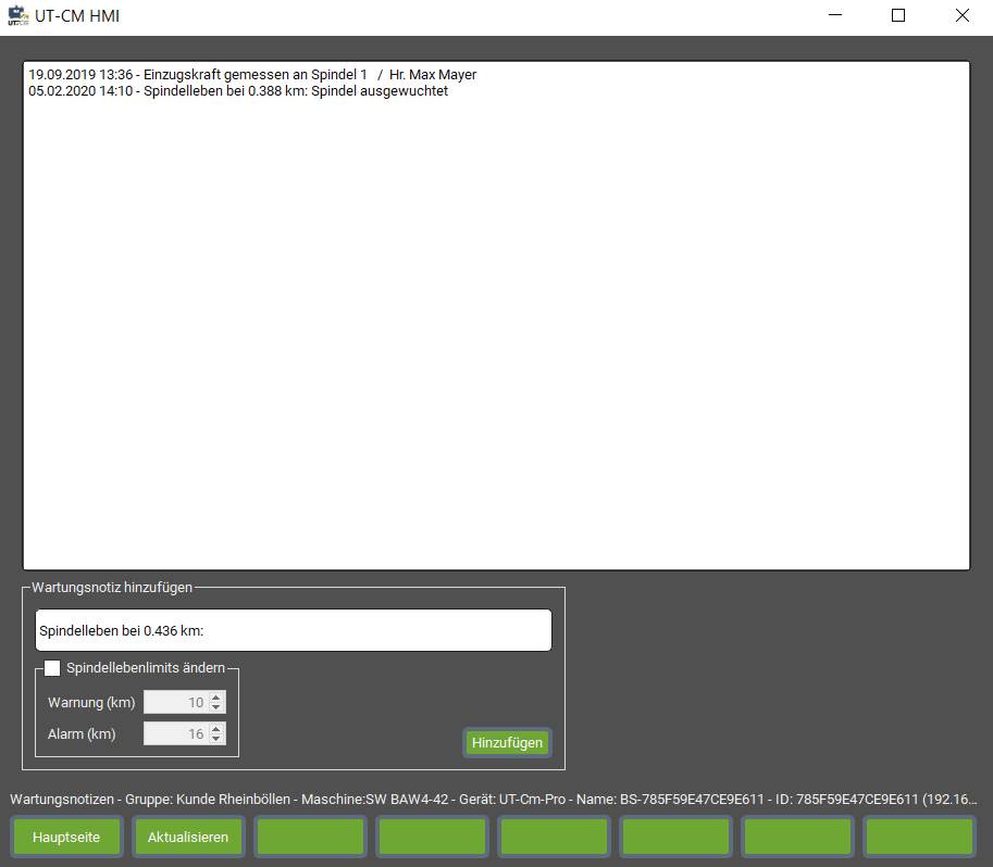 A l’aide des notes de maintenance vous pouvez générer un rapport de service exact sur chaque intervention de cette broche. Ces informations constituent la base de l’historique de la maintenance préventive.